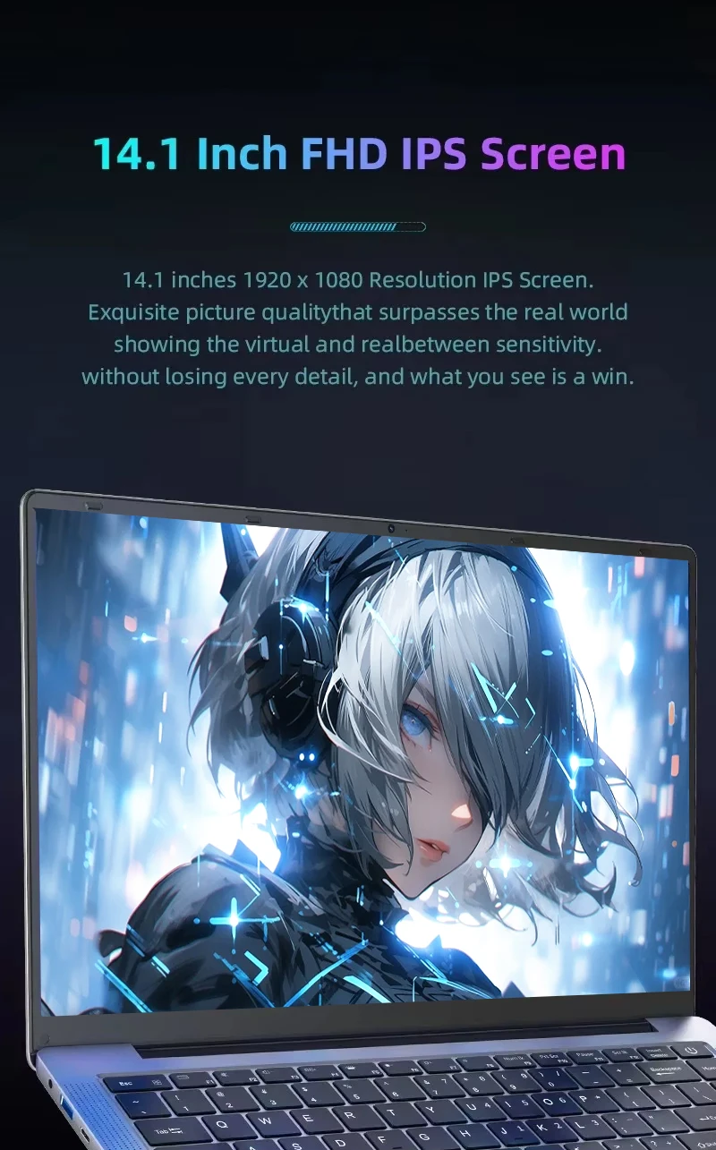 1) Tela IPS FHD 1920 * 1080P de 14,1 polegadas A tela FHD de 14,1 polegadas oferece uma visão mais ampla e ainda é claramente visível mesmo em forte iluminação externa.Além disso, o modo noturno e o ajuste de cores ajudarão a reduzir o cansaço visual.