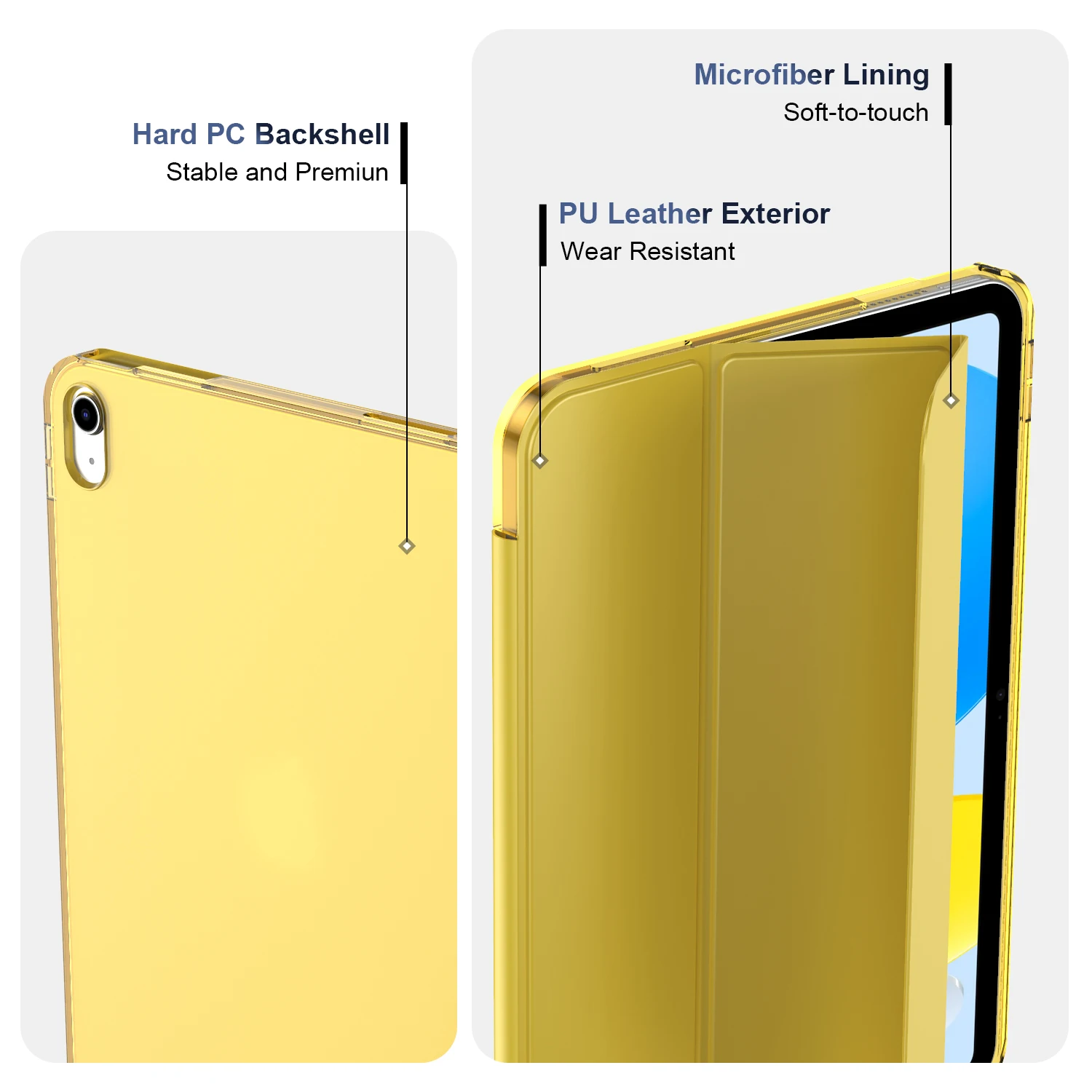 é feito de exterior de couro PU premium, forro de microfibra macio e cobertura com revestimento traseiro de PC translúcido, proporcionando proteção total total para seu precioso tablet