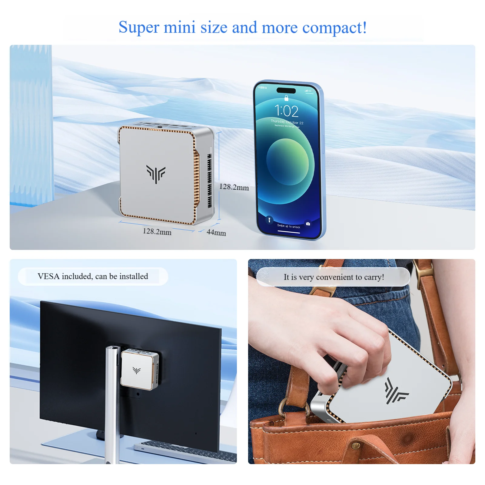 KAMRU Mini PC AMD Ryzen 3 4300U 16GB DDR4 512GB M.2 SSD Windows 11 PRO 4K WiFi5 Business VESA mini computador desktop