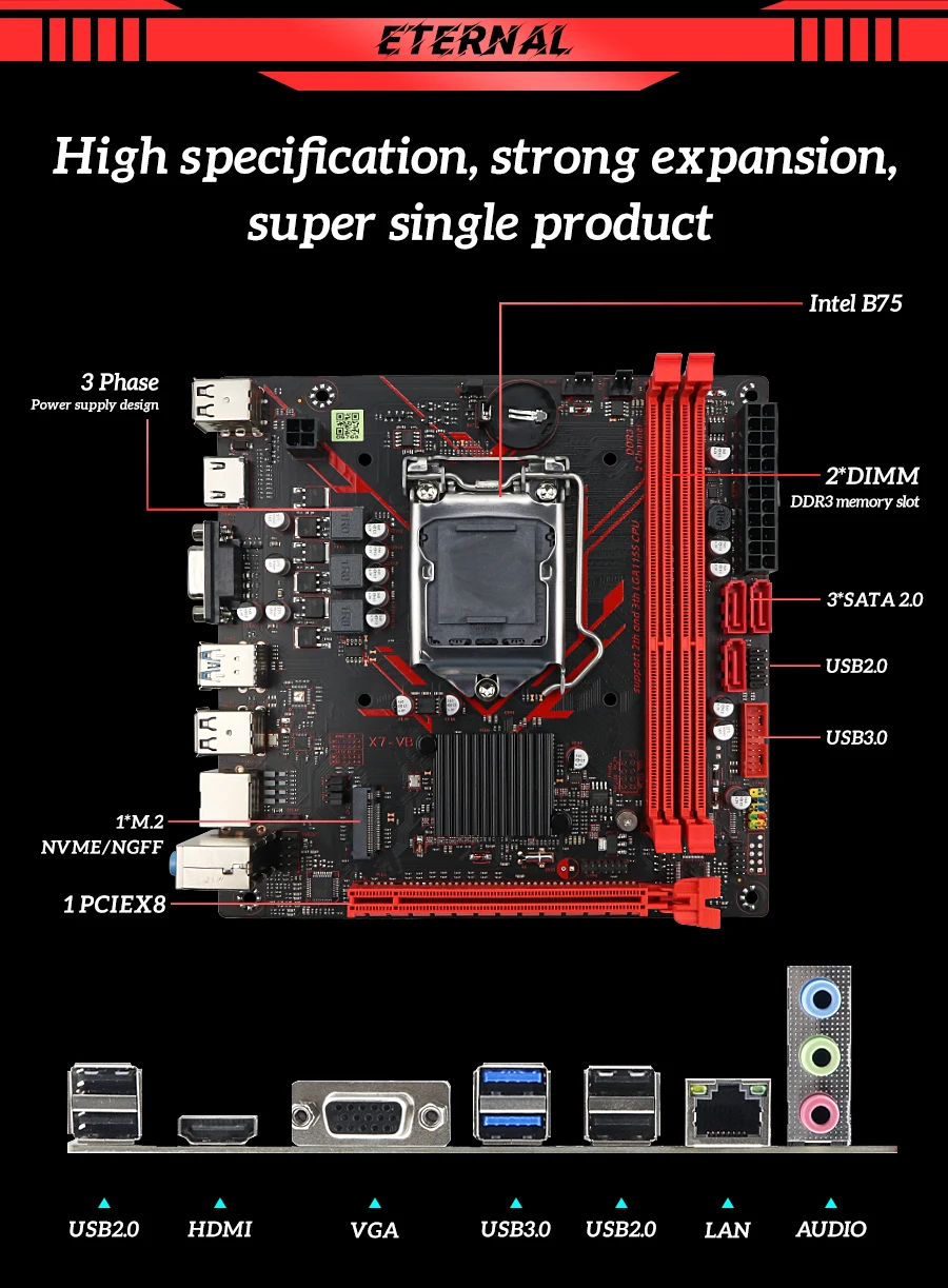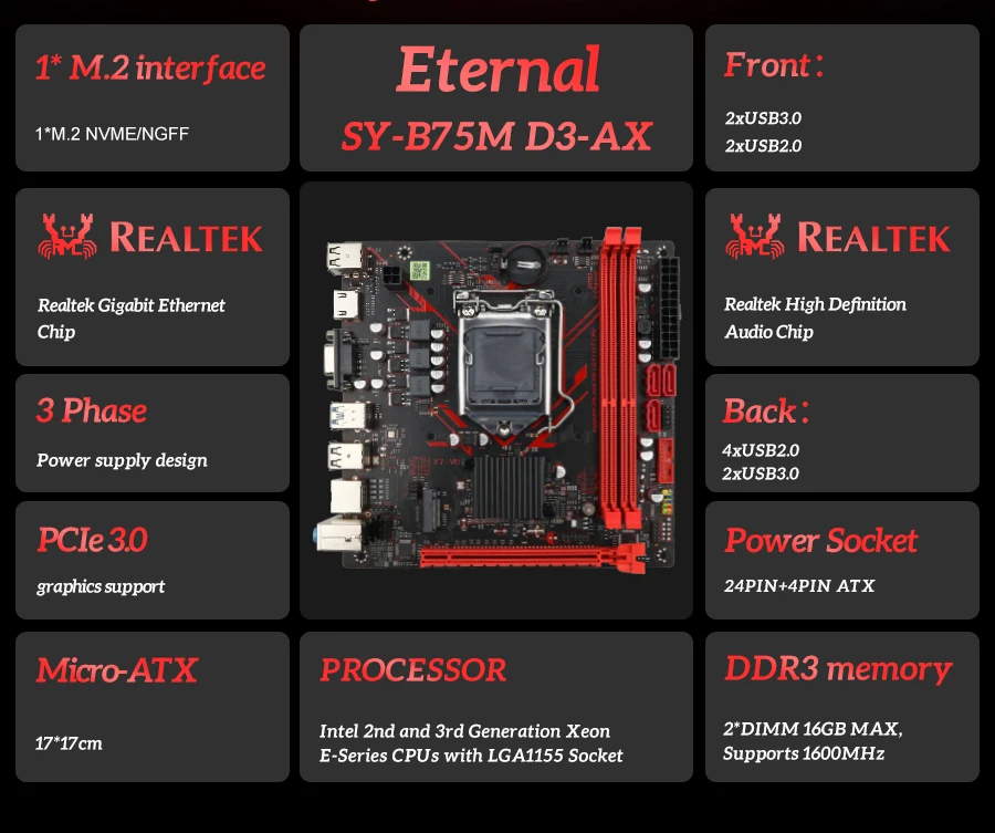 CPU suportada: para série Intel com soquete LGA 1155 (para Intel Core i3/i5/i7 Pentium)
