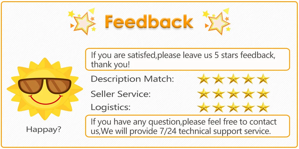 R: Sua recomendação é muito apreciada. Se você está satisfeito, por favor deixe-nos um feedback positivo e 5 estrelas classificação. Seu reconhecimento nos tornará mais confiantes para desenvolver nossos negócios e atendê-lo melhor. Se você tiver qualquer problema com o produto, entre em contato conosco livremente para resolvê-lo. Nós forneceremos o serviço do suporte laboral 7/24.