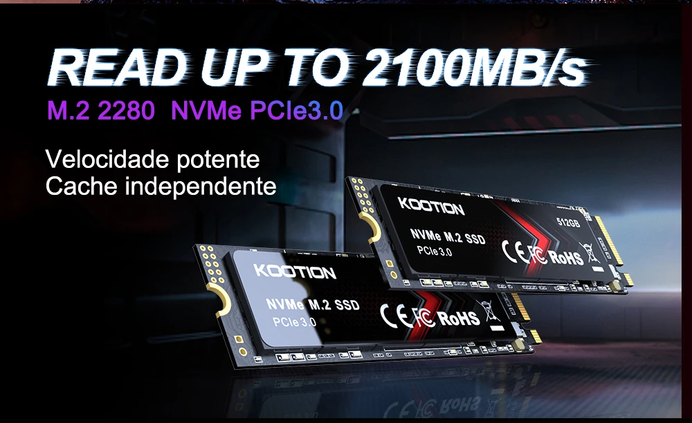 2 TB: leitura de velocidade: 2100-2500 MB/s, velocidade de gravação: 1400-1800 MB/s