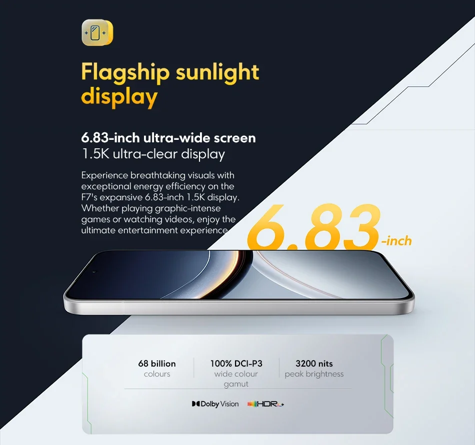 Tela -------- Tela AMOLED ultrabrilhante de 6,83" 1,5K 120 Hz