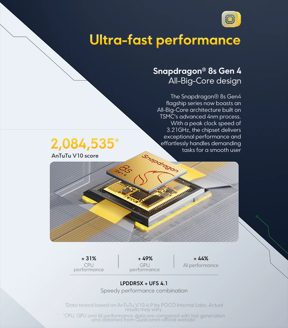 SO-----------Alimentado por Xiaomi HyperOS 2, suporte multilíngue e Google Play, sensor de impressão digital na tela, desbloqueio facial AI, proteção IP68 contra poeira e água, alto-falantes duplos