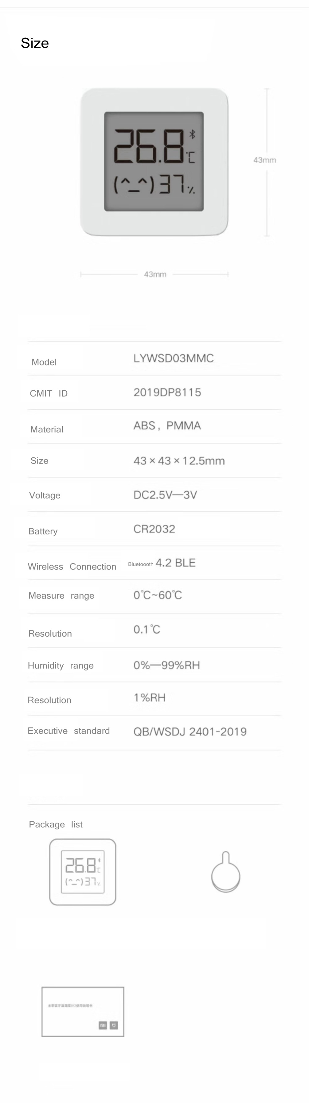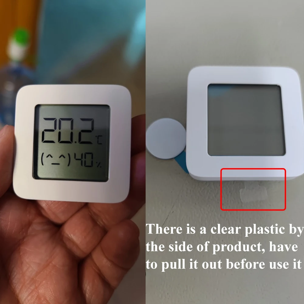 Display digital LED, você pode obter temperatura e umidade facilmente NOTA: Antes de usar o produto, é necessário retirar o plástico isolante para que possa ser usado. Pacote incluído: 1 x termômetro higrômetro mijia 2 (com bateria)