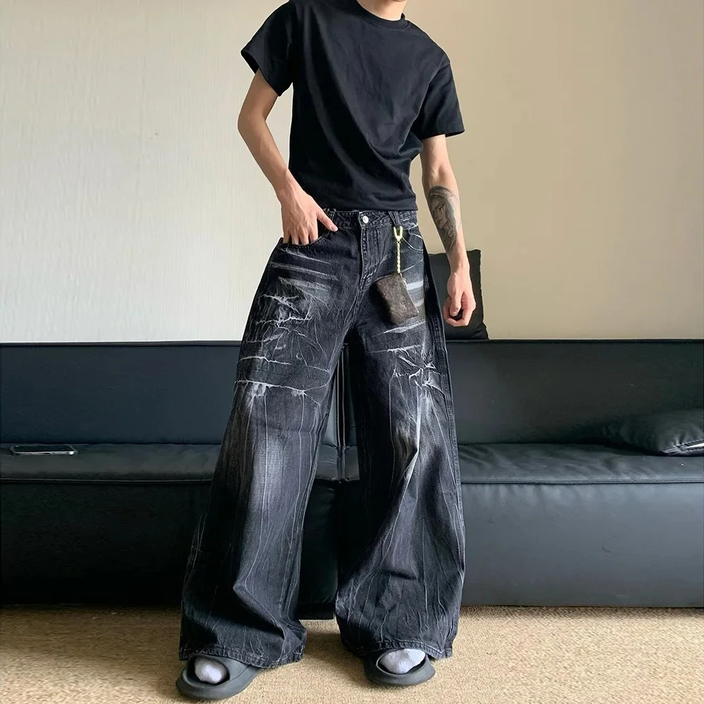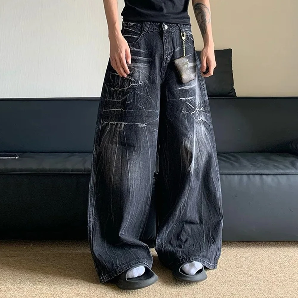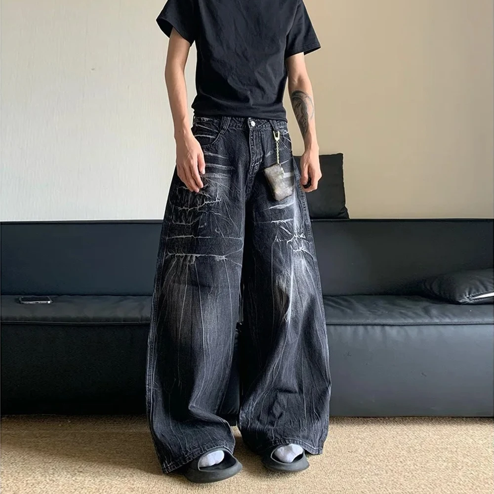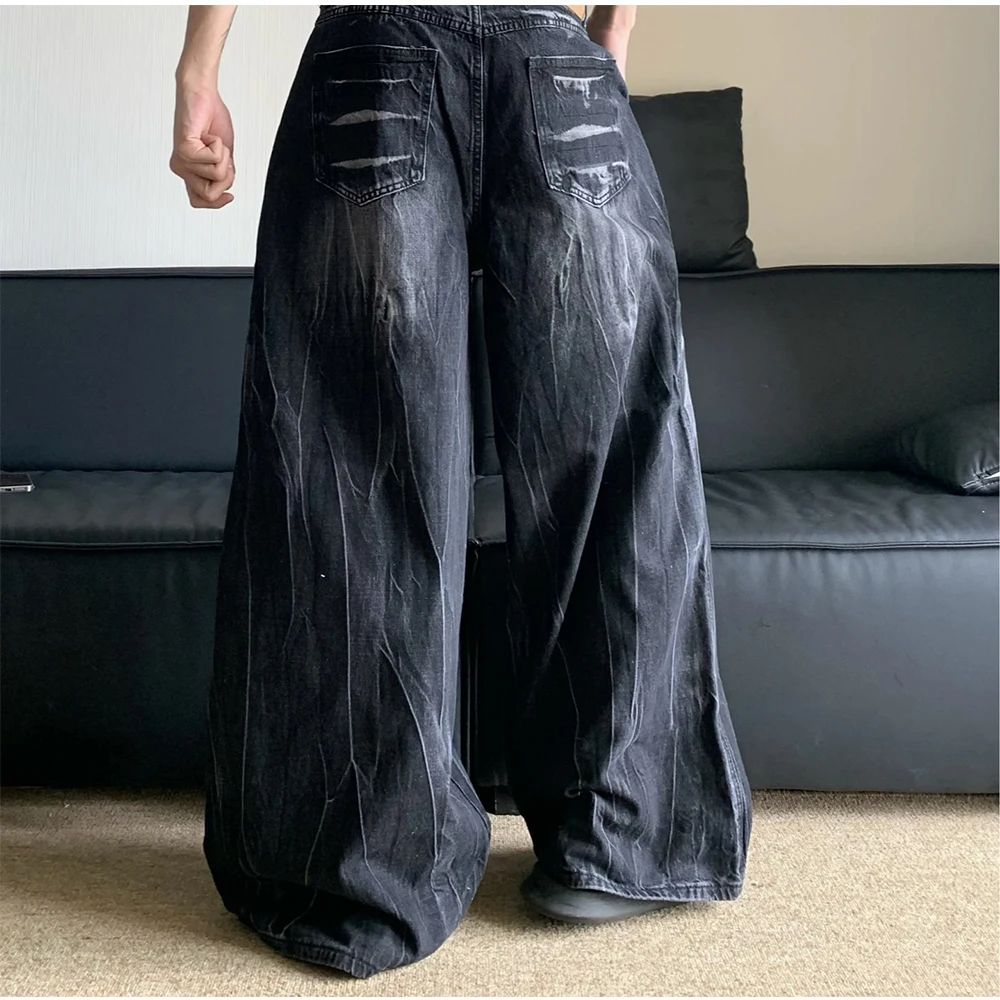 Y2k jeans lavados retro micro queimado cintura dupla rendas até calças das mulheres dos homens streetwear design de alta qualidade sentido