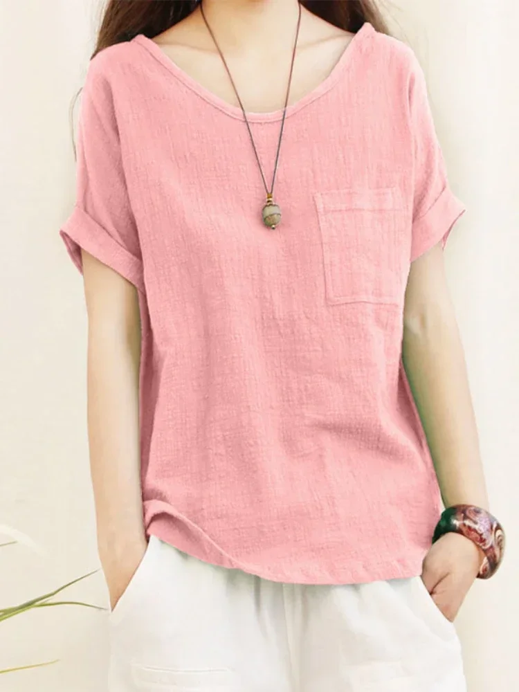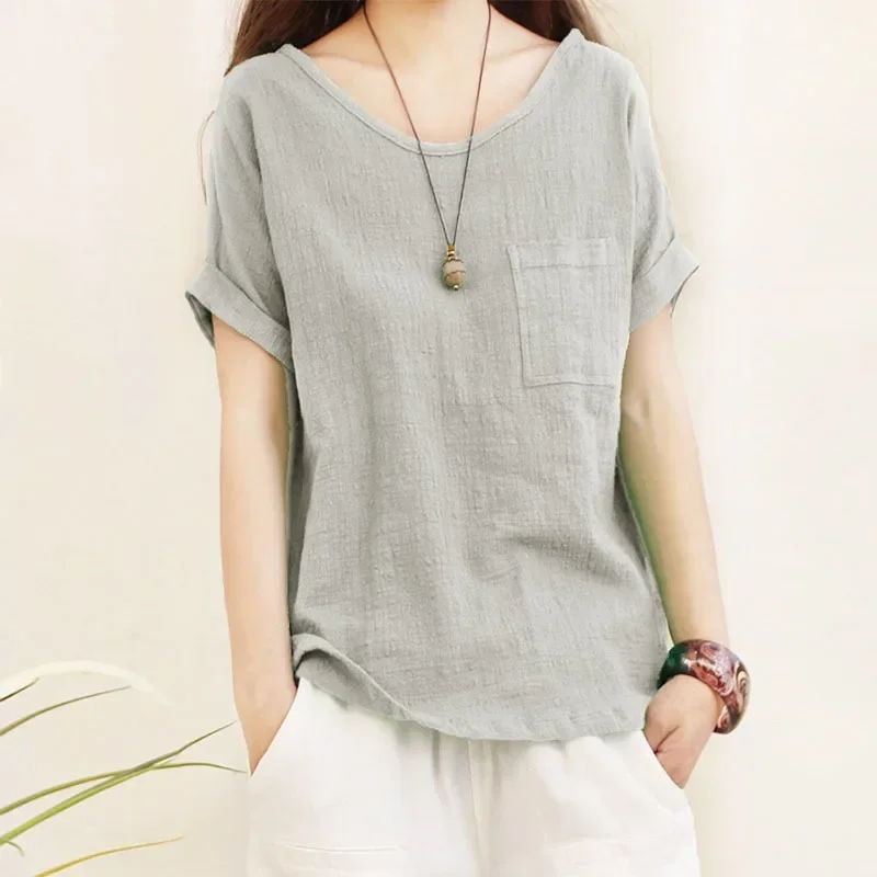 Novo em verde solto algodão linho blusas femininas 2024 camisas de verão casual manga curta o pescoço camisa sólida senhora topos blusa feminina