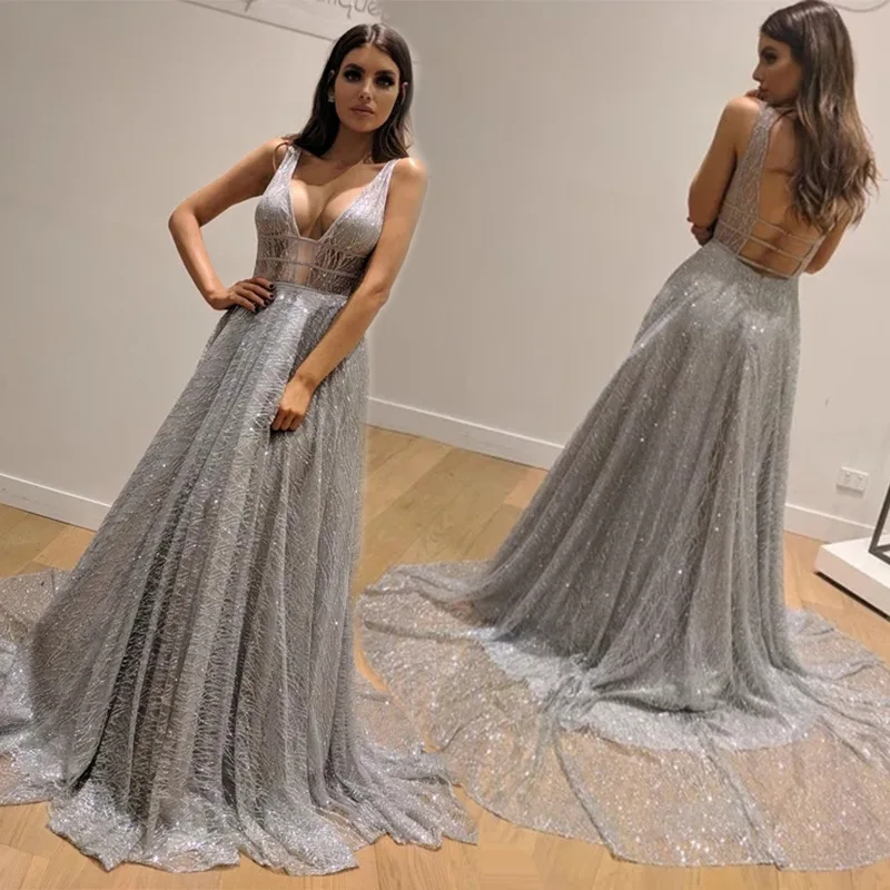 O comprimento longo do vestido cria uma silhueta dramática, tornando-o uma peça de destaque para qualquer festa.