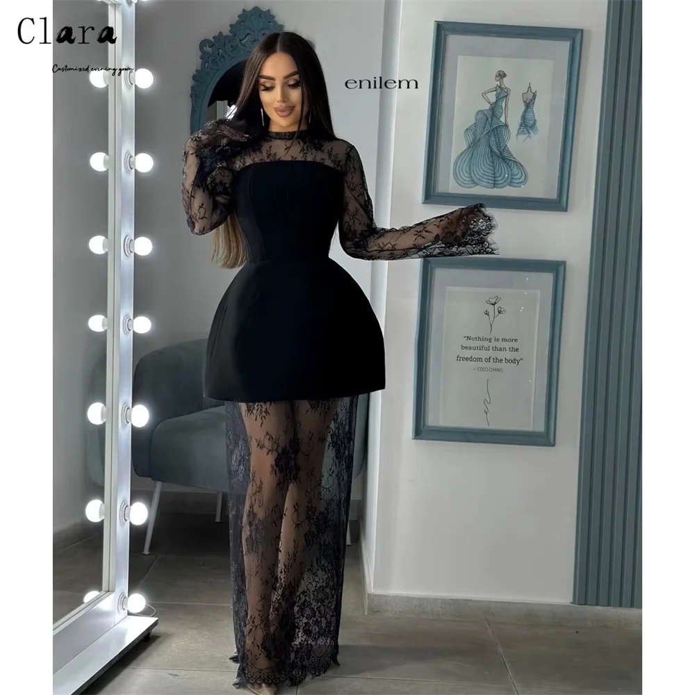 Clara personalizada renda preta em torno do pescoço mangas compridas vestidos elegantes 2025 mulher luxo vestidos de noite feminino vestido de baile 2025 festa