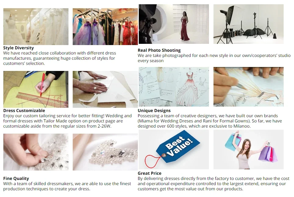 E. O tamanho, cor e design do vestido podem ser personalizados.